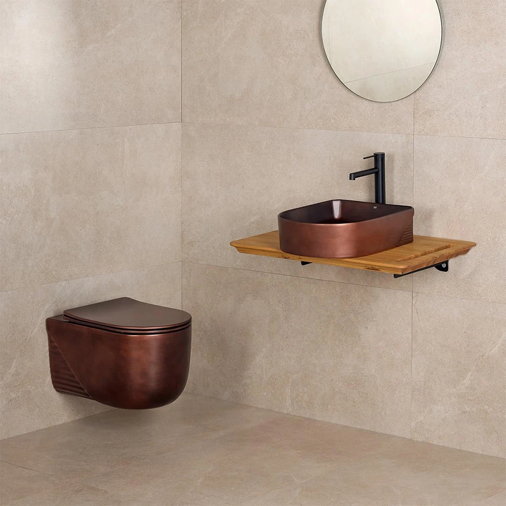 ONLINE SIPARISLena ET-H5110C Mat Bakır Kanalsız Asma Klozet Takımı
