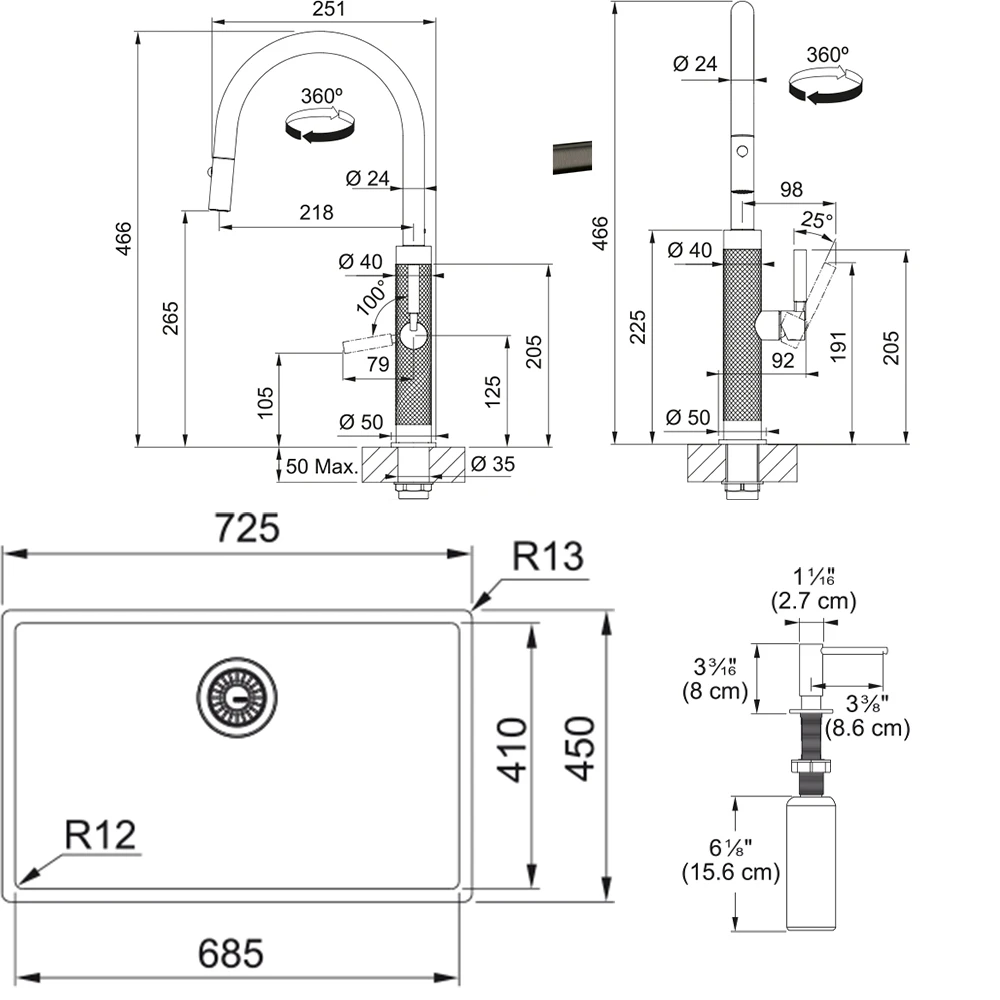- Toplam yükseklik 466 mm
