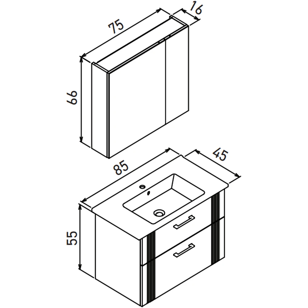 - Geniş depolama hacmi ile düzenli ve ferah banyo alanı