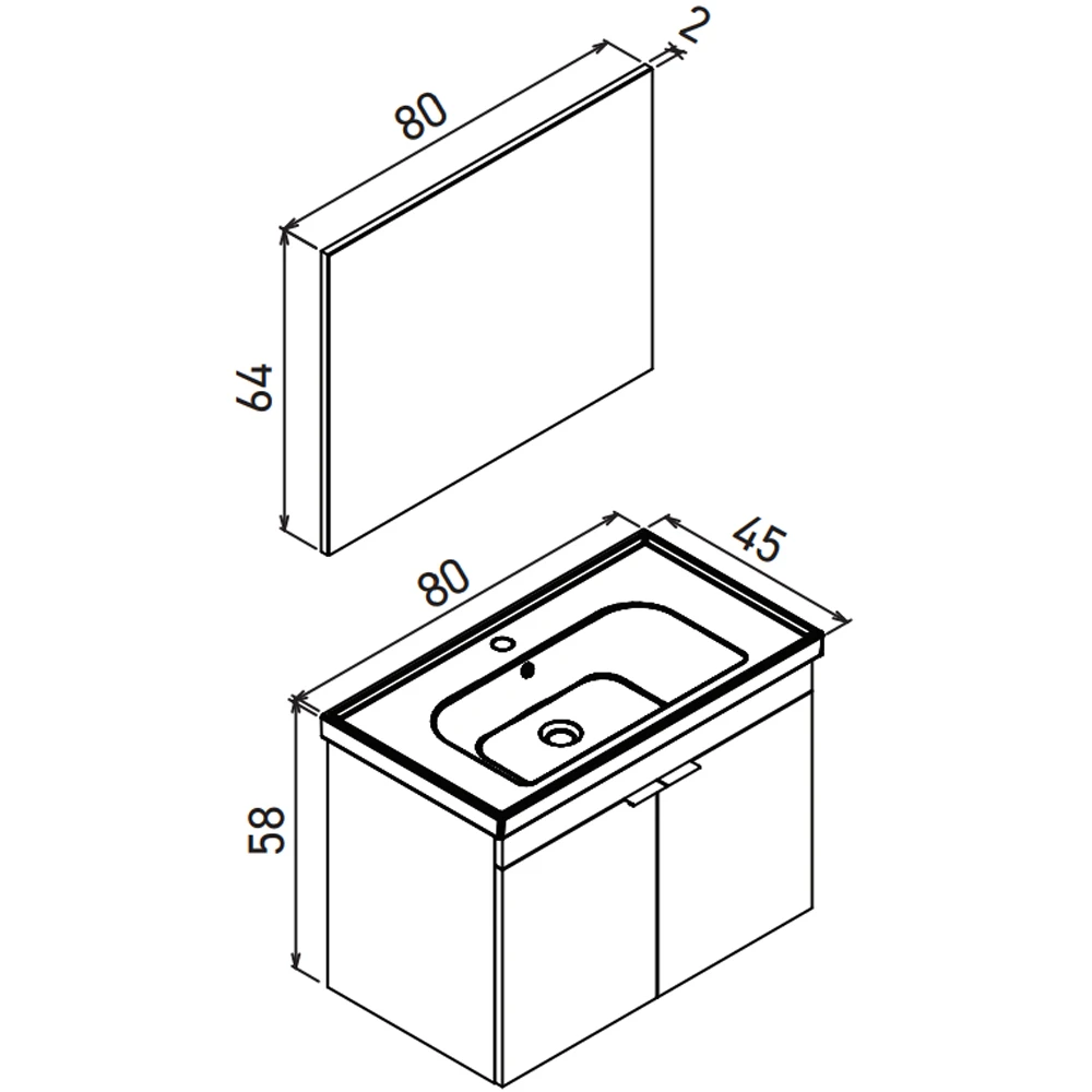 - Üst Modül: Aynalı dolaplı veya düz ayna alternatifli seçenek