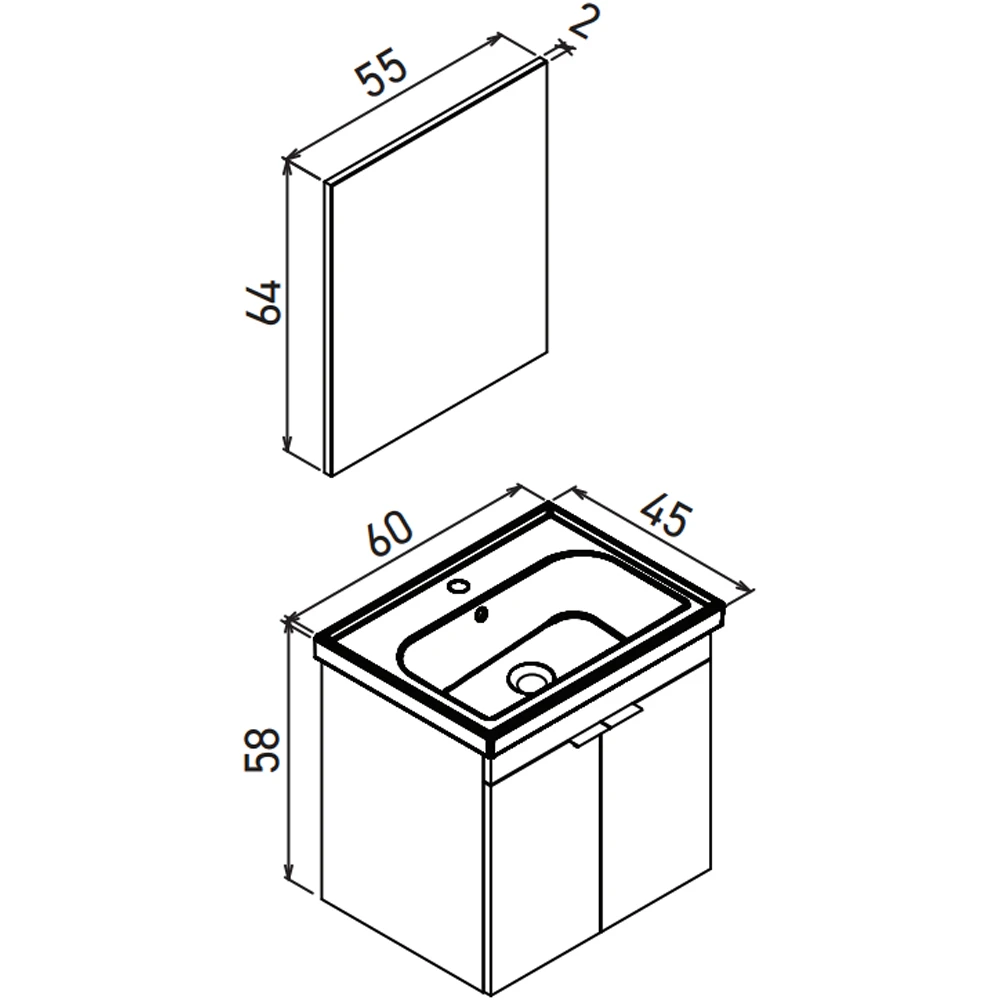- Üst Modül: Aynalı dolaplı veya düz ayna alternatifli seçenek