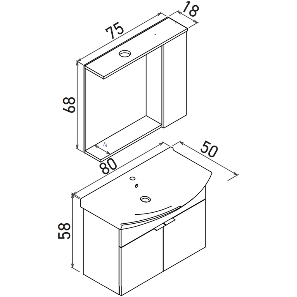 - Üst Modül Seçenekleri: Ayna dolaplı, düz aynalı veya LED spotlu aynalı dolap alternatifleri